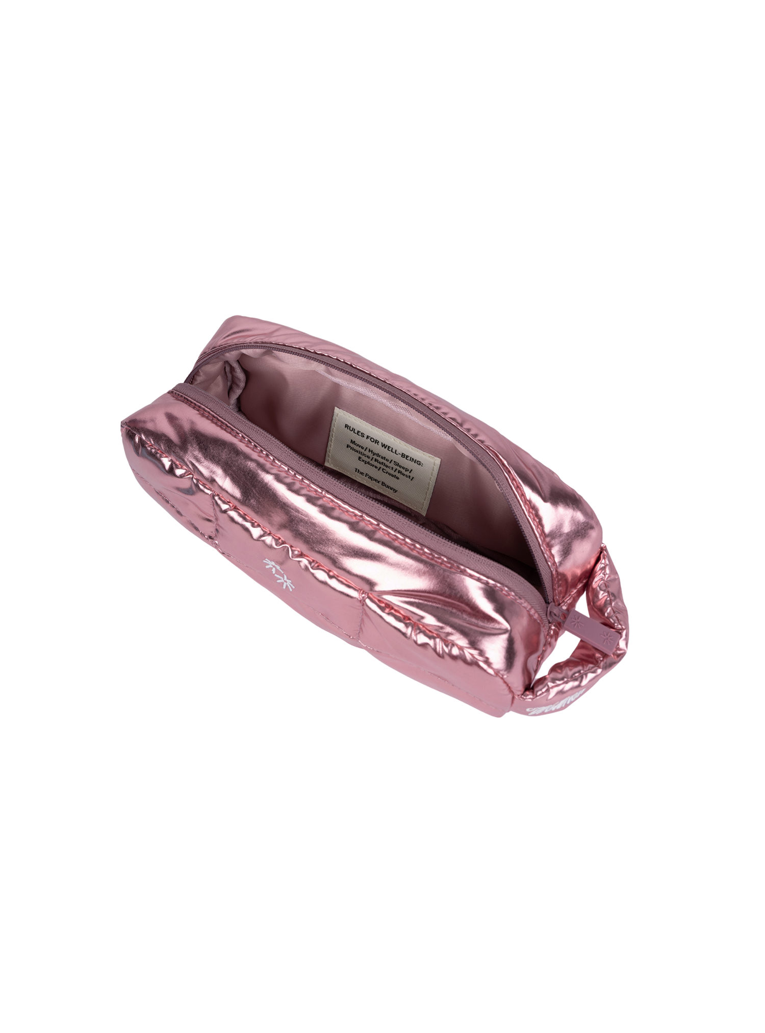 The petite sibling of the Pillow Pouch, the Mini Pillow Pouch fits your everyday essentials while saving space in your bag or on your desk. It features embroidered detailing outside with a hidden quote inside.