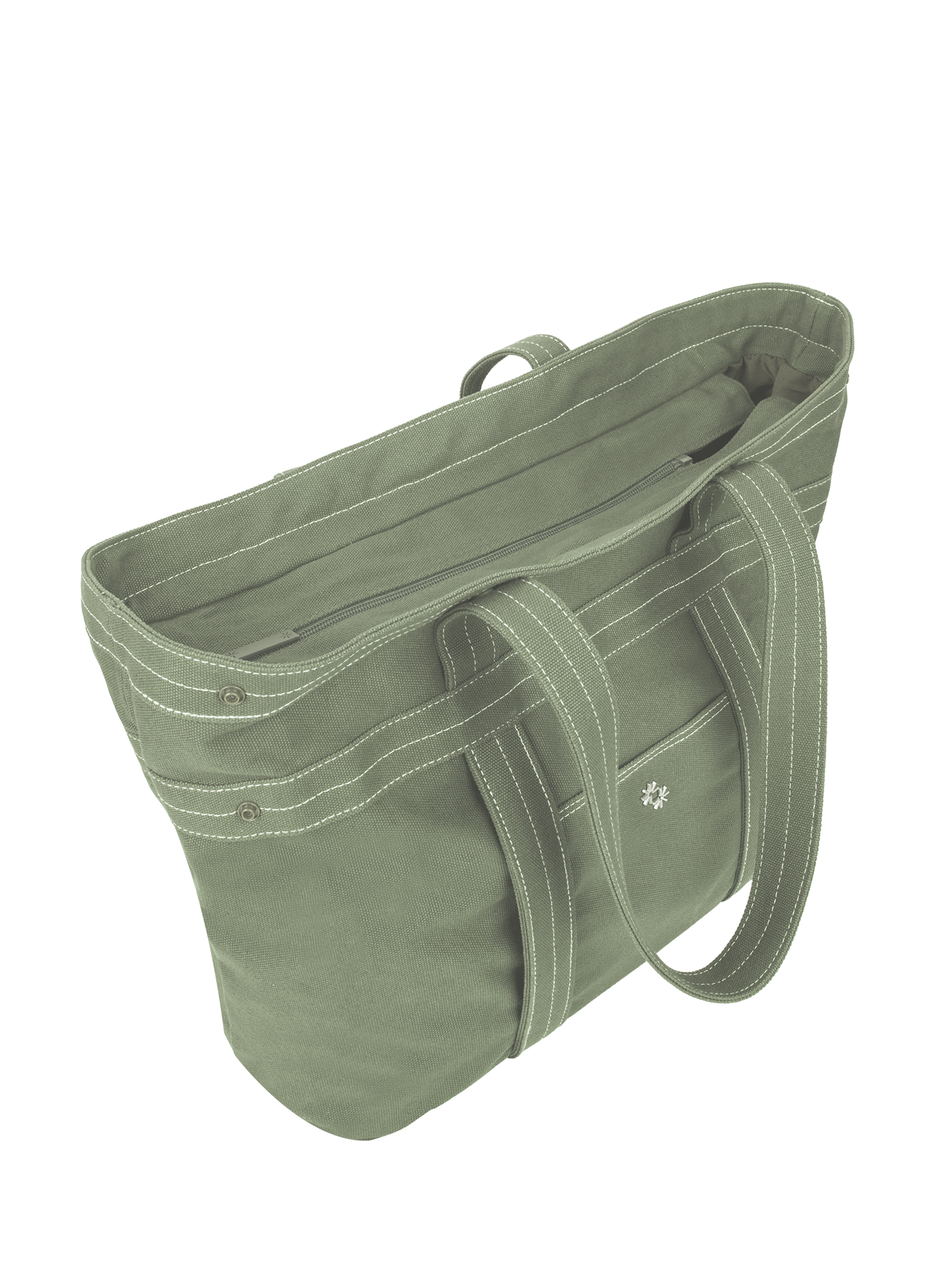 • Due to the multi-configuration of the Multi-Way Tote, the zip closure is designed to start slightly forward so you can continue to configure your Multi-Way Tote effectively while enjoying a closure to keep your belongings in.