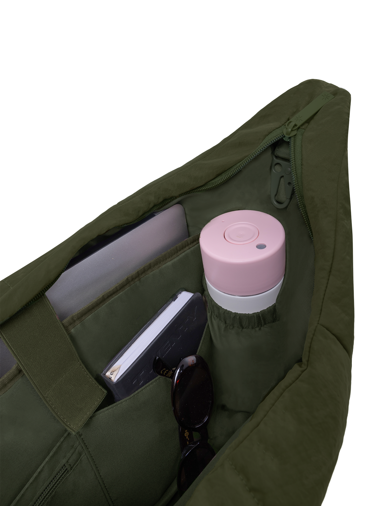 The Puffer Carryall is your do-it-all oversized bag – from gym to work. It features an adjustable strap, clip-on matching drawstring pouch, multiple compartments, a laptop slot, and a bottle holder.