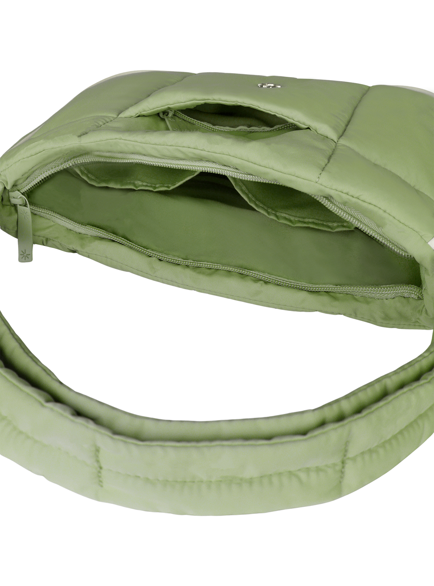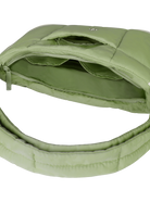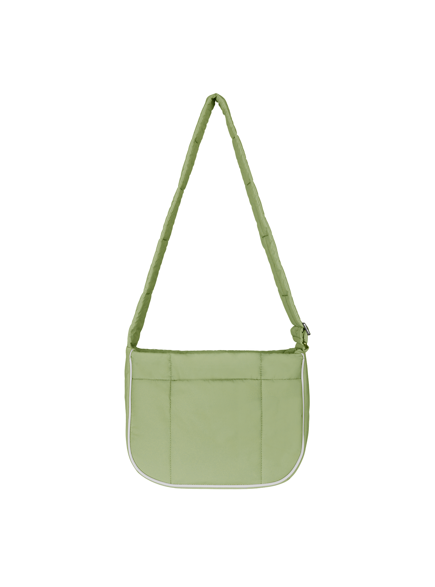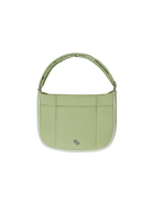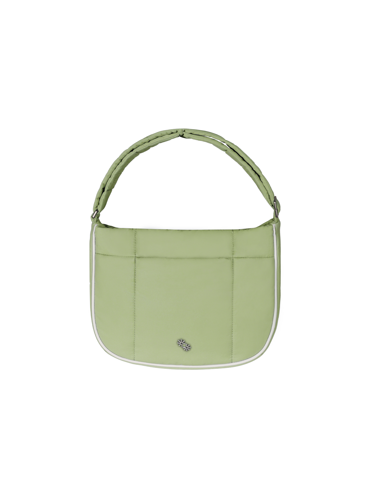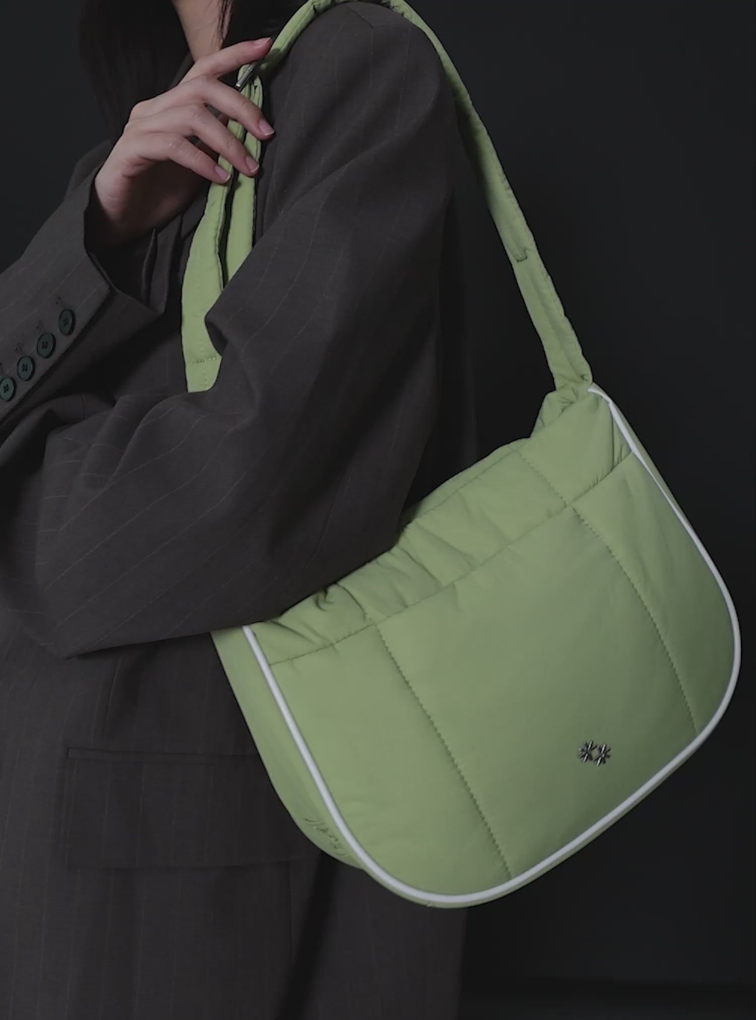 This Puffer Swing is an 80s-inspired shoulder bag made with smooth nylon, outlined in cream vegan leather piping for a refined, structured finish. Fits your daily essentials (even a water bottle and iPad), with interior and exterior zip pockets.