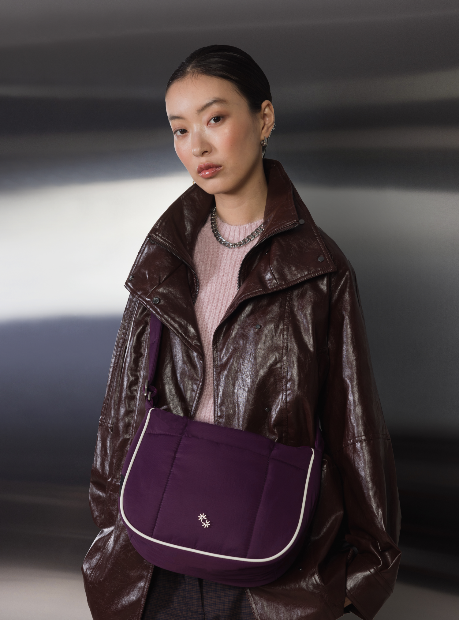 • Finished with a cream contrast matte vegan leather piping around the outer edge of the bag