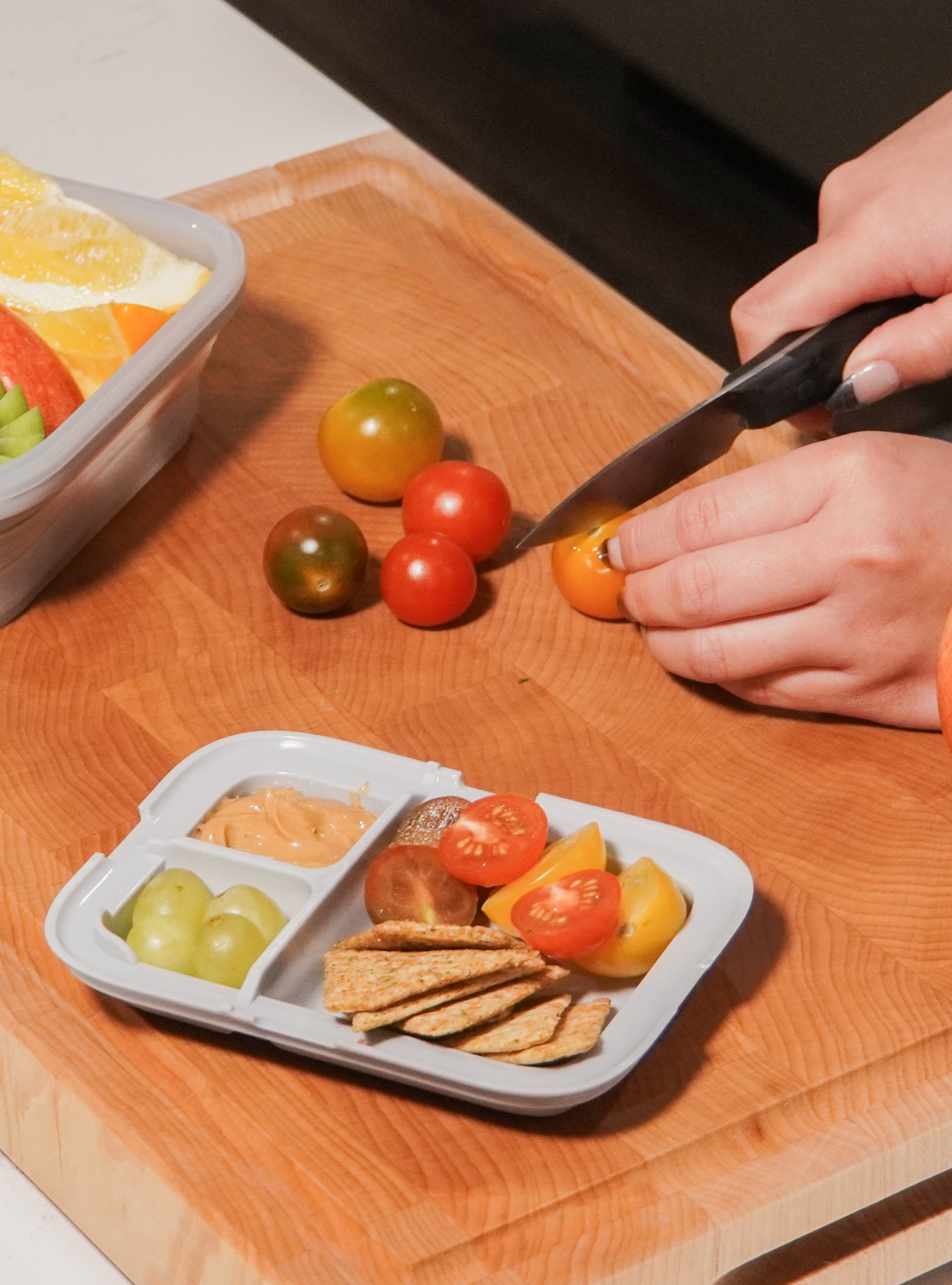 • Four clasp lid creates a spill-proof seal