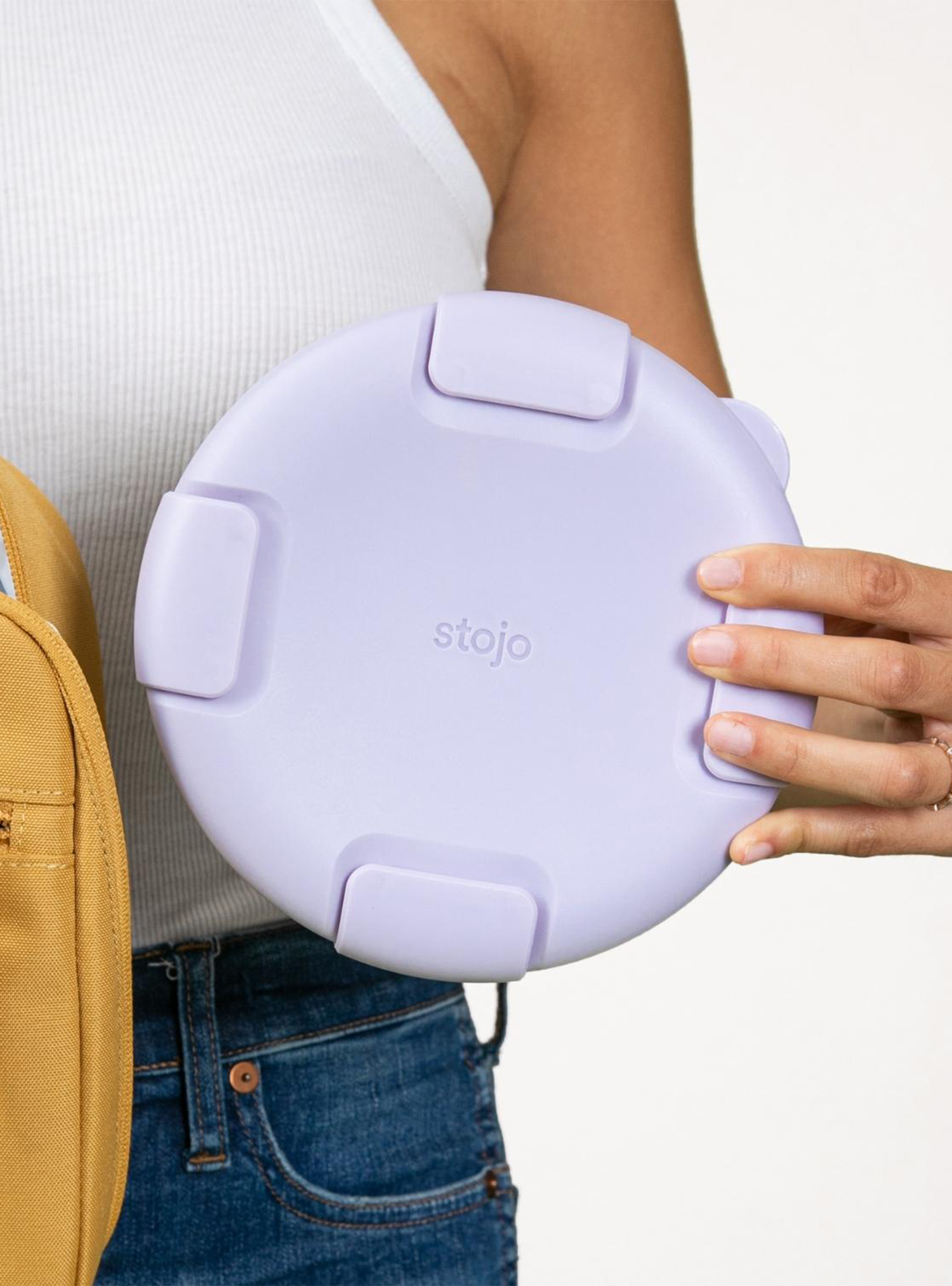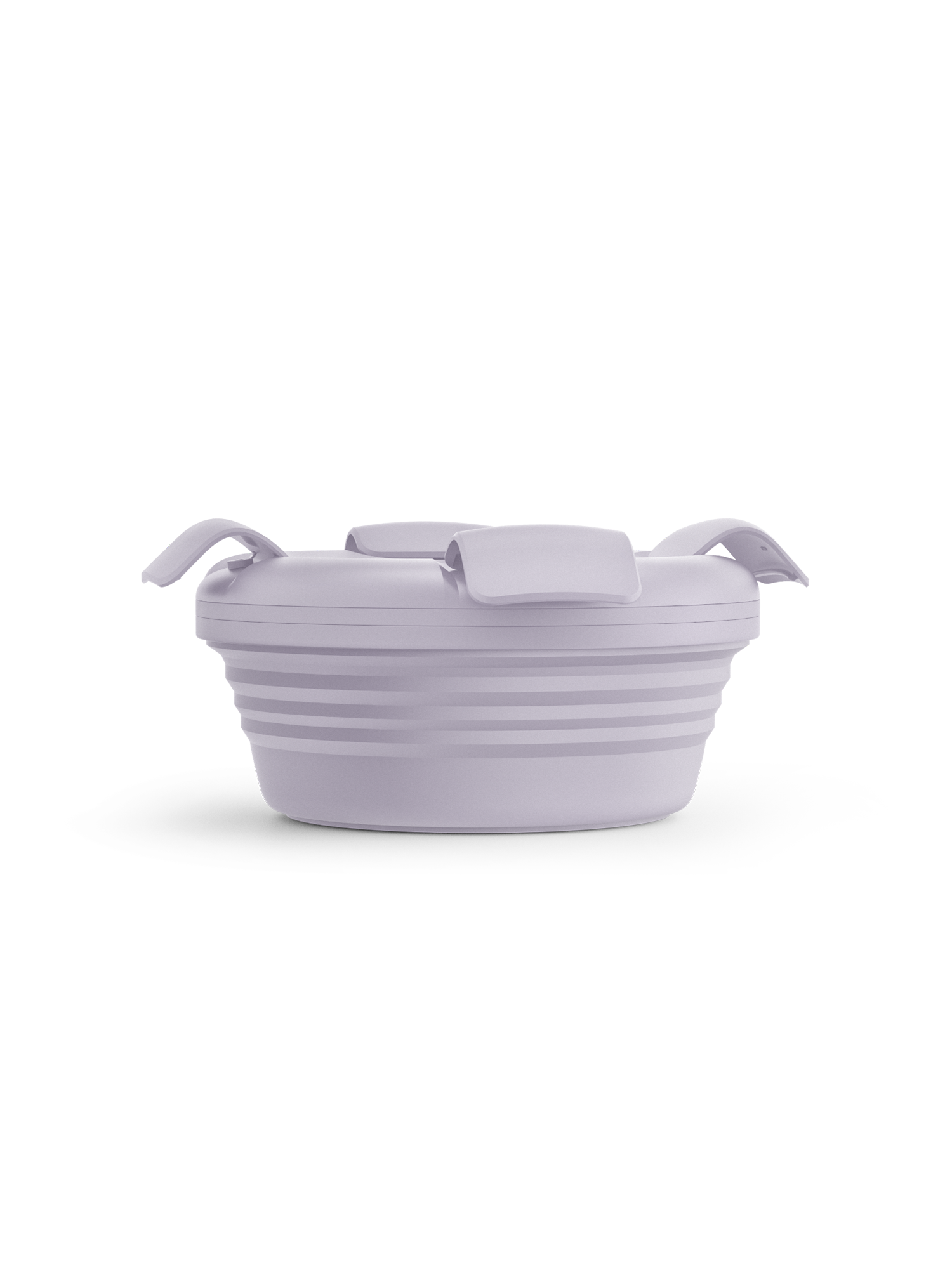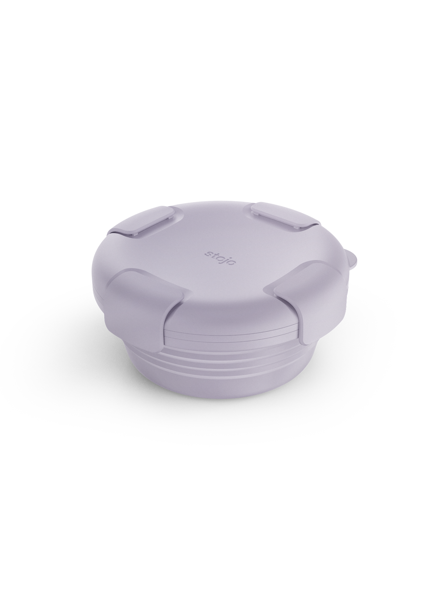 The Stojo Collapsible Bowl collapses into a flat disc for space-saving organization, complete with a lid with a leak-proof seal and clasp closure.