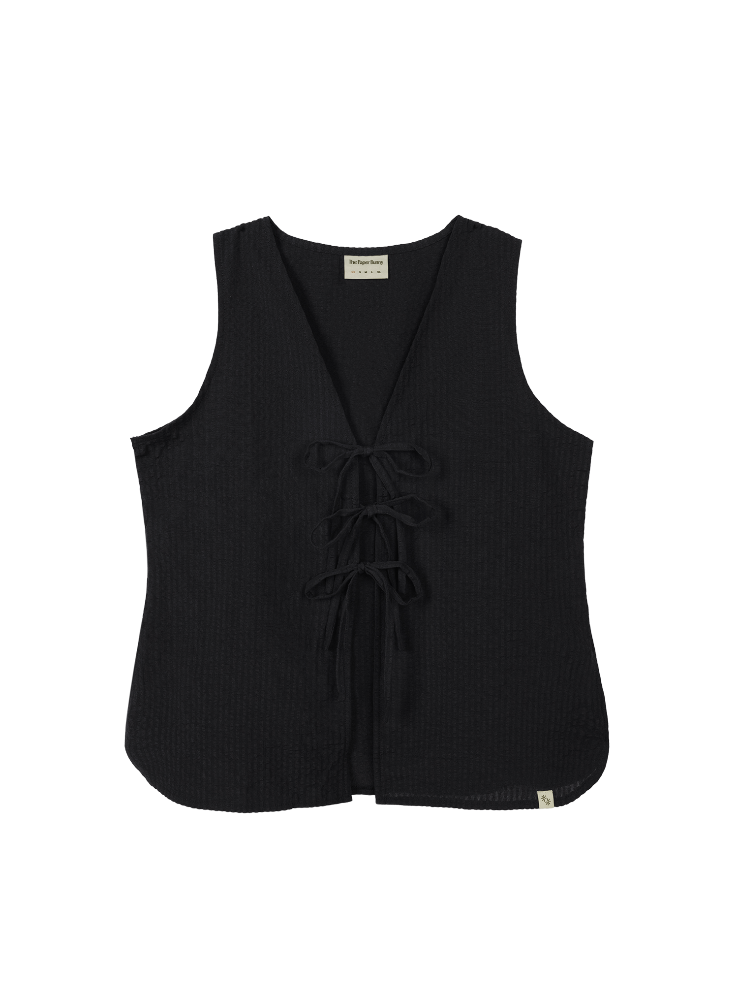 • Features front tie-straps and a relaxed boxy vest silhouette