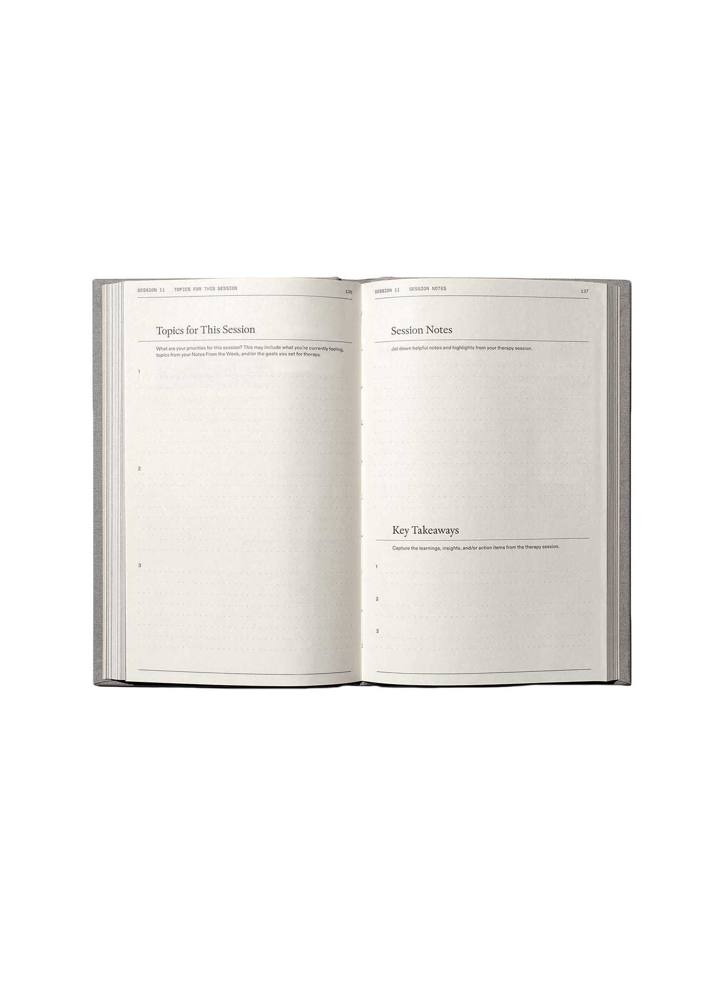 Be the co-pilot of your therapy sessions and capture insights that lead to progress in The Therapy Journal. Complete with 20 session entries and 70+ prompts to help you get the most out of your sessions.